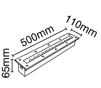 Πολύ καλό αδιάβροχο φωτιστικό τύπου μπάρας, κατάλληλο για φωτισμό τοίχων υπό πολύ μικρή γωνία φωτιστικής δέσμης. Τοποθετείται χωνευτό στο δάπεδο. Με μήκος 50 cm, διαστάσεις ΜxΠxY = 50,0x11,0x6,5 cm, μπορεί να τοποθετηθεί κοντά στον τοίχο και σε απόσταση 7,0 cm, φωτίζοντας επιφάνειες τοίχων σε αρκετό ύψος. Διατίθεται σε 3000Κ, σε 4000Κ και σε RGB απόχρωση φωτεινής δέσμης.